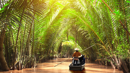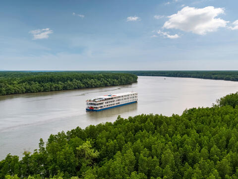 The beauty of river cruising is staying close to the river banks and watching the scenery unfold before your eyes. When you're sailing the Mekong, you'll notice how diverse the landscapes are - one minute you'll pass lush rice paddies, the next, palm-fringed banks, and also stilted villages where you'll find local men fishing and women selling produce from their boats. You'll also notice the difference between Vietnam and Cambodia as you cruise the delta - in Vietnam, the river is wider and local life is livelier, while in Cambodia, it's quieter. Every bend offers a new perspective and during your cruise, you'll experience it all.