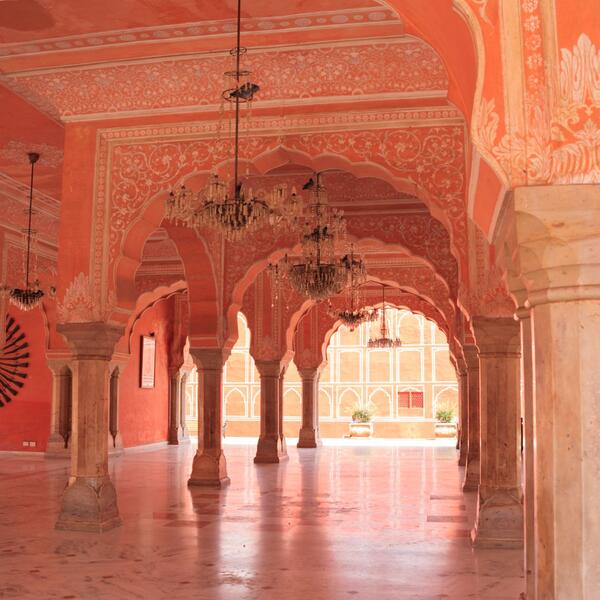Today's exploration of Jaipur then continues with a sightseeing tour. You'll visit the City Palace, a magnificent complex that blends Rajput and Mughal architectural styles and the Jantar Mantar, an ornate astronomical observatory, and a UNESCO World Heritage Site built in the 18th century. You'll also drive past the Hawa Mahal, or the 'Palace of the Winds', a striking pink palace with intricate latticework that allowed royal women to watch street processions without being seen.