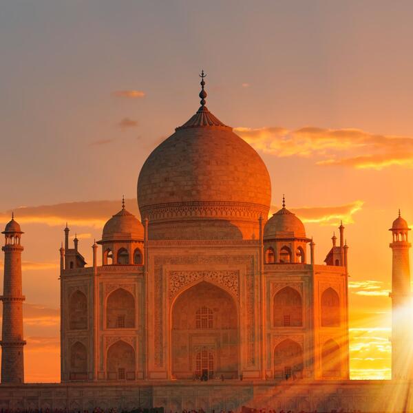 You'll then look forward to two once-in-a-lifetime experiences. First, during a two-stay in Ranthambore, embark on a safari with a local, expert naturalist. Keep an eye out for striped hyenas and endangered Royal Bengal tigers that call this National Park their home. After, travel to Agra, home to the famous Taj Mahal. You'll have the opportunity to witness this UNESCO-listed mausoleum at sunrise, and you may choose to join an optional excursion to visit again at sunset.
