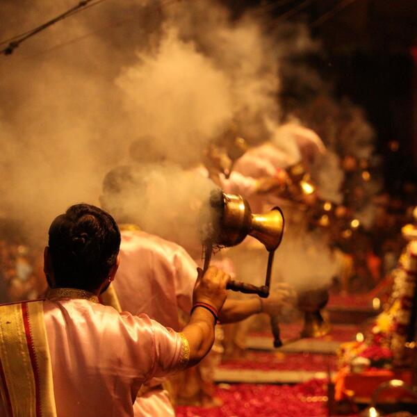 Return to the hotel for a late breakfast and a few hours to relax before heading back into the heart of the city. Begin at the Benaras Hindu Campus, one of India's finest universities. This grand building, founded in 1916 by Annie Besant, a key proponent for Indian independence, has since become a major research centre. Continue to Shri Viswanath Mandir, a major temple and shrine for Indian Hindus, where you'll learn more about the religious history and the faiths that coexist in Varanasi. Your final stop, the Sankat Mochan Temple, worships the monkey god, Hanuman, and showcases Uttar Pradesh's traditional Hindu architecture.