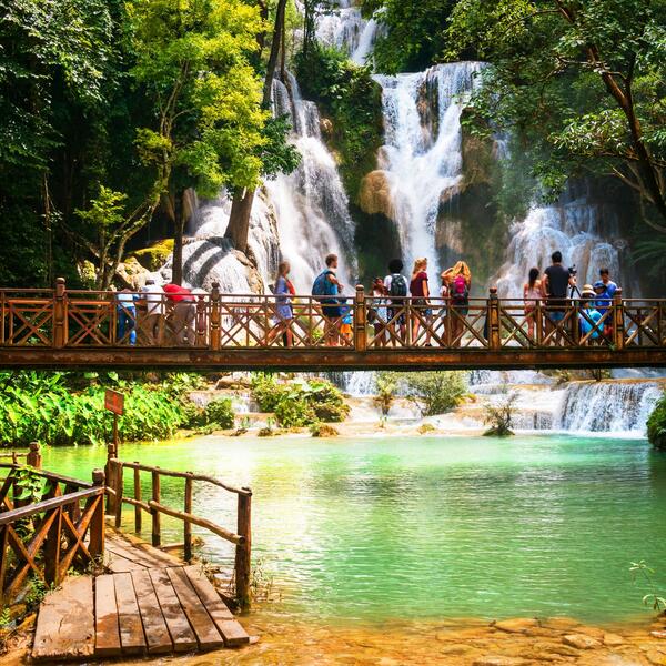 After breakfast, embark on an excursion to Kuang Si Falls surrounded by jungle landscape. On the way, you'll stop at Hmong and Khamu village and Ock Pop Tok Living Crafts Centre set on the Mekong River. Once you reach the falls, you can cool off by swimming in the designated areas.