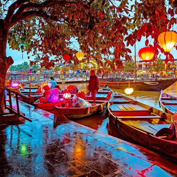 Disembark and return to Hanoi airport for a short flight south to Da Nang. Upon arrival, transfer to the port town of Hoi An, home to a well-preserved old town, interspersed with canals.